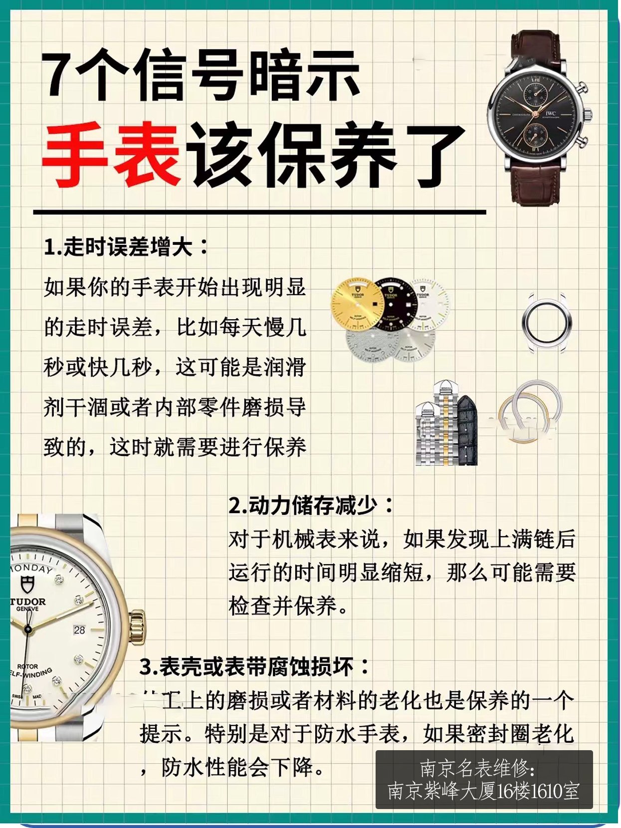 要讓手表始終保持良好的運(yùn)行狀態(tài),了解一些手表維修保養(yǎng)知識(shí)及相關(guān)注意點(diǎn)至關(guān)重要。以下便是南京市鼓樓區(qū)中山北路2號(hào)紫峰大廈辦公樓16樓1610-1611室修表中心為大家總結(jié)的幾個(gè)關(guān)鍵方面。